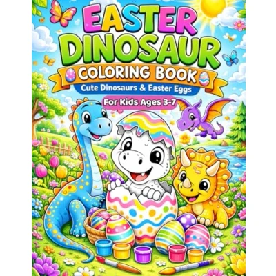 Easter Dinosaur Coloring Book: Cute Dinosaurs and Eggs for Kids Fun Pages Boys Girls Ages 37