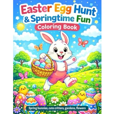 EASTER EGG HUNT & SPRINGTIME FUN COLORING BOOK: Spring Bunnies, Cute Critters, Gardens, Flowers