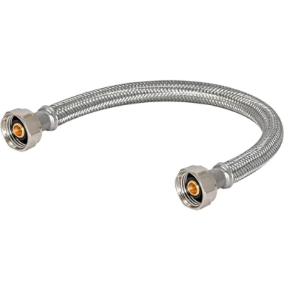 BRAIDED FAUCET CONNECTOR: Eastman flexible faucet supply line measures 16 inches in length and features 1/2 inch FIP x 1/2 inch FIP connections, compatible with most kitchen and bathroom faucets REINFORCED CONSTRUCTION: Built with a PVC core, multi-filament braided nylon reinforcement, a clear vinyl outer shell, and a grade 304 stainless steel braided exterior for added strength and flexibility EASY TO INSTALL: Features full-flow brass barbs and nickel-plated solid brass hex nuts; the flexible design allows for quick installation in tight spaces with no soldering, glue, or crimping required RELIABLE PERFORMANCE: Rated for a working pressure of 125 PSI and a burst pressure of 1500 PSI; suitable for residential and commercial faucet connections CERTIFIED QUALITY: Complies with UPC, CSA, NSF, and AB1953 standards for performance and material safety in potable water systems, Weight: 0.14109584768 pounds, Manufacturer: Eastman