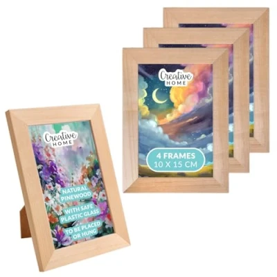 Easy Assembly Wooden Photo Frame Natural 10 x 15 cm Set of 4