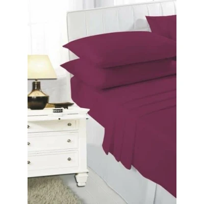 Easy Care NON IRON 4FT SMALL DOUBLE/DOUBLE Fitted Sheet Polycotton Bed Mattress Cover & PILLOW PAIR (Maroon, Double Only)