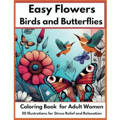 Easy Coloring Book for Audults Women. Large Print : 50 Illustrations of Flowers, Birds, and Butterflies Stress Relief Relaxation. (Large ... Adult Women Relaxation)