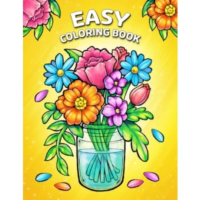 Easy Coloring Book: Large Print Designs for Adults and Seniors with 50 Simple Images of Animals, Flowers, Food, Objects, More! (Easy Books)