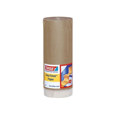 General description tesa Easy Cover® 4364 combines a high-quality folded special covering paper with a lightly crêped painter’s tape, allowing for large areas to be covered and edges to be precisely taped off in a single, time-saving step. This smart 2-in-1 covering solution provides excellent paint adherence and is suitable for sensitive, smooth, and slightly rough surfaces during paint and plaster work. Professional painters frequently use this product for taping off and protecting baseboards, window sills, window frames, and door frames. The flexibility of the painter’s tape also allows for gentle curves to be taped off. Technical specifications Dimensions: 300mm x 25m Usage Masking and protecting large areas For clean, straight paint edges Ideal for covering windows during plastering and painting work Suitable for baseboards, window sills, door and window frames