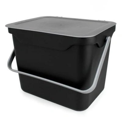 Easy Eco Plastic Kitchen Compost Caddy/Food Recycling Waste Bin 5 Litre Black & Silver Grey (5L)