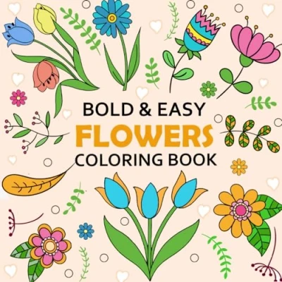 Easy FLOWERS: Bold and Coloring Book: 50 Simple Large Print, Cute Relaxing Designs for Adults, Seniors, Dementia, Beginners Kids to Relaxation Stress Relief