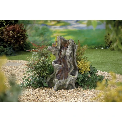 General description The Easy Fountain Willow Spills LED Natural Garden Water Feature is a unique addition to any garden, designed to replicate the natural texture of wood. Water gently flows from the top of the stump, cascading past a bird perched above, creating a serene atmosphere. The pools are illuminated by LED lights, enhancing the feature during the evening and adding an enchanting touch to your garden or patio. Technical specifications Self-contained fountain with recirculating pump included Durable construction with a stone effect, 50% lighter than real stone Includes low voltage LED light All fittings and instructions are included Installation Plug and play - no electrical or water plumbing required Simply fill up, plug in, and go Usage Easy to set up and low maintenance