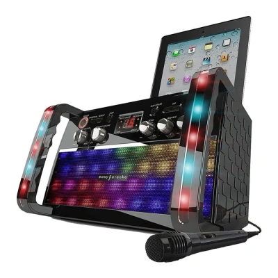 Kick your karaoke parties up a notch with this Easy Karaoke System. Download the Smart Karaoke app to get access to thousands of songs and enjoy singing along to your favourite tunes. Can't find something on the app? Simply stream songs and lyrics from your mobile using Bluetooth so you'll always be able to find what you're looking for. It's got built-in speakers and LED light effects to really help get the party started and give your performance a little bit of extra razzle dazzle. Good to know - The included mic has independent controls, so you can stay in charge - Pop you tablet into the holder and follow along with the lyrics - The CD player lets you play music from old albums - Play around with the echo control to add some depth & resonance to your voice