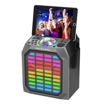 Wireless Karaoke with LED Light Show – Create the ultimate party vibe with the synchronised disco ball light effect and a 40-piece LED panel that moves to the music. Powerful Sound with Custom Controls – 30W peak power speaker in wooden cabinet for superior sound quality, echo control, mic and music volume, plus USB, AUX and line-in options for total control. Rechargeable and portable - Built in rechargeable battery and Wireless Microphone Included . Sing freely with the dynamic wireless mic. Also includes 2 mic inputs for duets and karaoke battles! Record & Playback Your Performances – Capture your best moments with built-in recording and playback functionality. Bluetooth Streaming & Easy Connectivity – Connect your phone, tablet or MP3 player to stream thousands of FREE karaoke tracks via the Easy Karaoke app.
