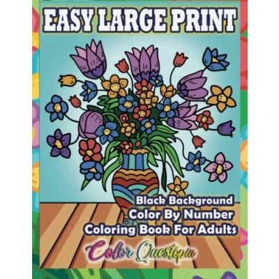 Easy Large Print Color by Number Coloring Book For Adults BLACK BACKGROUND: Simple Numbered Designs Relaxation