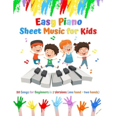 Easy Piano Sheet Music for Kids: 50 Songs Beginners in 2 Versions (one hand + two hands)