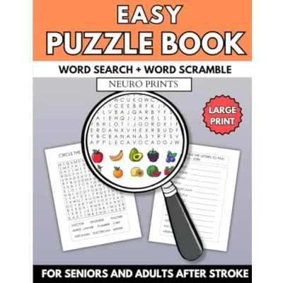 Easy Puzzle Book For Seniors And Adults After Stroke: The Ultimate Large Print Activity With Variety Brain Games, Word Search & Scramble