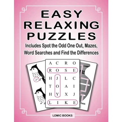 Easy Relaxing Puzzles: Includes Spot the Odd One Out, Mazes, Word Searches and Find Differences