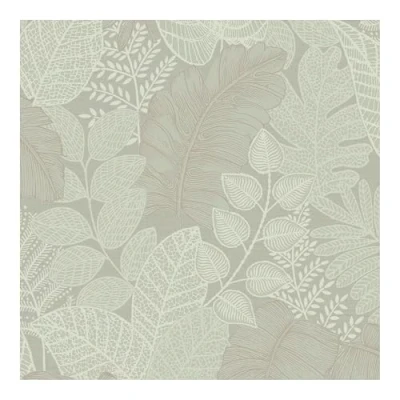 WallpaperDirectA contemporary montage of overlapping leaves. Textured skelton outlines overlapping in different patterns and shades of colour with metallic detailing. Shown in the soft sage green colourway.
