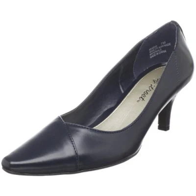 Classic pump with faux-wrap toe box and covered heel Cushioned foam footbed Traction outsole
