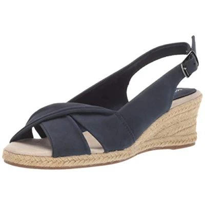 Easy Street Women's Maureen Espadrille Slingback Sandal Wedge, Navy, 5.5 UK