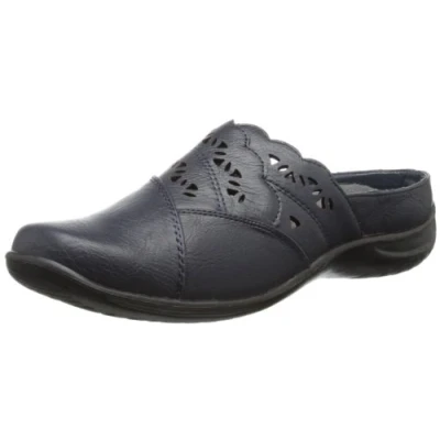 Open-heel mule in layered construction featuring scalloped vamp overlays with cutouts closure_type: Slip-On brand: Easy Street manufacturer: Easy Street