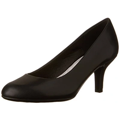 Round-toe dress pump featuring comfort sock and flexible outsole