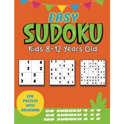 Easy Sudoku Kids 8 12 years Old: Book Of 220 For Ages Old With Solutions And 3 Types Puzzles 4x4 6x6 9x9, Children 9 10 11