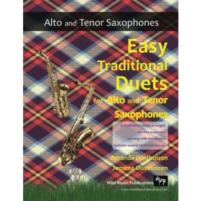 easy traditional Duets for Alto and Tenor Saxophones: 32 melodies from around the world arranged especially beginner saxophone players. All are in keys.