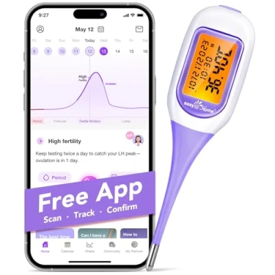 ✔GET PREGNANT EASIER THAN EVER WITH Premom: Whether you are trying to conceive (TTC), avoid pregnancy naturally, or just want to know your body better, the Easy@Home’s Premom with Smart Basal Thermometer does it all with ease. ✔SMART & Automatically Chart: The Premom APP will chart your Automatically Chart (BBT) and generate the coverline automatically to pinpoint the BBT spike with precision. ✔CLINICALLY HIGH MEASUREMENT ACCURACY: Clinically Accurate with high precision at ±0.09℉/±0.05℃. It only takes about 1.5 - 2 minutes to read result. Unlimited record stored on cloud with your account and 30 records recallable with device. You can choose between Fahrenheit and Celsius. ✔INTELLIGENT: Premom predicts the fertility window accurately using an advanced algorithm that incorporates all your fertility signs including: BBT, ovulation test results, PdG test results and period information for the best prediction. You can track and view your cycle and fertility windows prediction at any time. ✔ OTHER FEATURES AND SERVICE: Large screen with backlit for reading in the dark easily. Gentle confirmation beep when test is complete. Experienced and professional customer service agents are available for any questions you may have.