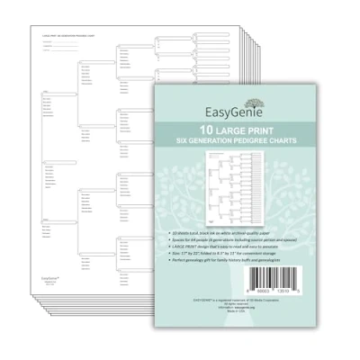 EASYGENIE 10 LARGE PRINT Six Generation Pedigree Charts for Ancestry Archival Quality Genealogy Forms