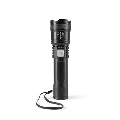 EASYmaxx LED Torch Rechargeable with USB C & Zoom, 3 Light Modes, Extra Bright, Long Running Time Splashproof, for Camping, Household, Car Travel