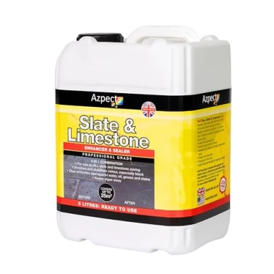 EASYSeal SLATE & LIMESTONE SEALE: Easy to use advanced water-based high-performance sealer using the latest technology to provide a waterproof, breathable, transparent yet durable seal to limestone and slate. Whether it's for walls or floor on the exterior of your property, EASYseal is the product to keep your slate and limestone looking great. GOOD COVERAGE: 5 Litre Easy Seal Slate & Limestone covers up to 25m² Solvent-free and easy to use. EASYSeal Slate & Limestone helps to repel dirt and stains and inhibits the growth of moss and algae, and keeps damp out. It can also be used as a waterproofing agent for a powerful Slate & limestone treatment. For use only on slate or limestone. HOW TO USE: Our slate & limestone sealant can be used in just a few quick and easy steps: Brush away and leaves and debris from your stone. Make sure to shake the bottle well before use. Apply a generous even coat with a brush, roller, or garden sprayer. Mop up the excess to avoid pooling. For greater enhancement, apply a second coat before the first coat dries. Allow 8 hours before walking on the surface and 24 hours for the product to cure completely. LONG LASTING PROTECTION: A 5 litre tub of our liquid water sealant forms a long-lasting barrier that covers up to 25m². Solvent-free and easy to use. Meaning you can use and re-use as you see fit. it provides an invisible protective seal against oil, stains, rain etc. to keep your patio & garden looking great. ABOUT US: At Azpects Ltd, we specialise in developing and manufacturing products to create and maintain outdoor hard-landscaping. Our mission is to deliver products that make typical construction and care challenges EASY and less frequent