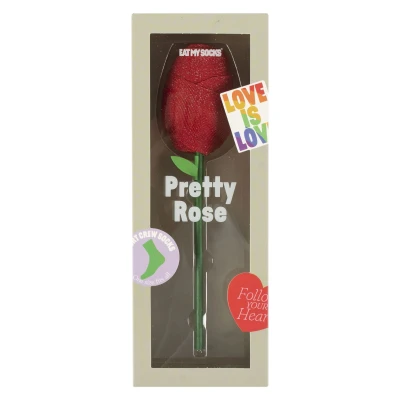 Ah, beautiful! A rose by any other name… is socks. That name would be socks. But this lovely EAT MY SOCKS Pretty Rose Cotton Socks pack doesn’t flatter to deceive. No, it isn’t a sweet-smelling flower, but as a gift of love, it will last longer and possibly even give more pleasure. Anyone would appreciate the artful, clever and fun way these socks are presented. And, they’re just great socks too. In a fine gauge knit, they’re light, soft and extra-comfortable with smooth toe seams. In a unisex fit and a short crew length, these otherwise-plain socks have, delightful small rose motifs woven into the cuffs. All packaging is eco-friendly too, from the wood pulp laminated paper box to recycled PE window.