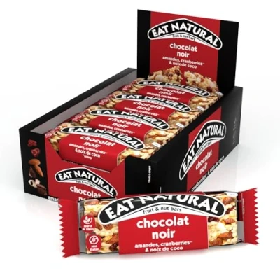 This Eat Natural bar consists of cranberries, almonds, coconut and a dark chocolate base. This fibre and gluten-free source bar is the ideal snack for the whole day.