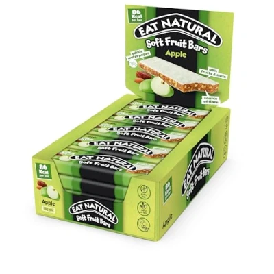 Eat Natural Soft Fruit Bars Apple, Dates & Almonds Vegan, Gluten Free Snack and Source of Fibre Simple, Delicious On the Go 25g (Pack 15)
