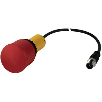 Emergency & hold/emergency stop button, classic, Mushroom Shape, 38 mm, tension adjustable, 2 ö, cable (Black) with M12 A plug, 5-Pin, 0.2 m EAN 4015081806690 Worldwide Eaton warranty