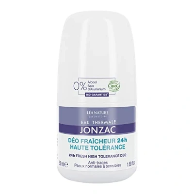ORGANIC DEODORANT – The High Tolerance 24 Hours Freshness Deodorant is a natural deodorant active for 24 hours without blocking your perspiration and with a high remanence fragrance all day long HIGH TOLERANCE FORMULA – Respecting even the most sensitive skins our roll on deodorant is formulated with 99% natural ingredients. Our aluminium free deodorant is suitable after waxing or shaving NO MARKS – The High Tolerance 24 Hours Freshness Deodorant by Jonzac not only preserves your sensitive skin with its clean formula but its quick-drying action also prevents stains on clothes ISOTONIC THERMAL WATER – The Jonzac thermal spring water aquifer lies 1850 meters underground. A natural ingredient, the thermal water contained in our organic deodorant is revitalising and soothing MADE IN FRANCE – Our skincare lines are formulated and produced in France, near La Rochelle, in our eco-designed cosmetics factory. This high tolerance natural roll on deodorant is certified Cosmebio Directions: Apply on the armpits, after the shower, morning and/or evening. Ingredients: Key ingredients: Jonzac thermal water 15% and talc. INCI Formula: Water *, Anthemis Nobilis Flower Water**, Propanediol, Talc, Triethyl Citrate, Fragrance, Zinc PCA, Candida Bombicola/Glucose/Methyl Rapeseedate Ferment, Sodium Levulinate, Xanthan Gum, Decyl Glucoside, Sodium Benzoate, Glycerin, Lactic Acid, Glyceryl Undecylenate, Potassium Sorbate. * Jonzac thermal water and water. ** Organic ingredients. Item display weight: 0.08 kilograms. Item display volume: 50.0 milliliters.
