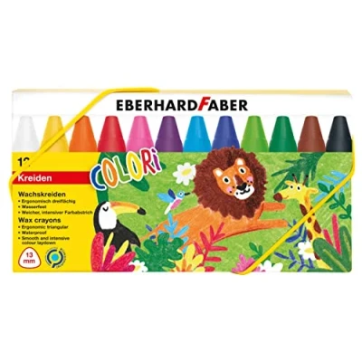 12 wax crayons in a cardboard box for safe storage, waterproof and shatterproof, suitable for colouring books, light, dark and coloured papers as well as for terry cloth technique 12 different colours with a soft and intense colour stroke for beautiful highlights in every picture With practical paper sleeve that protects the lead and ensures clean children's hands The ergonomically shaped wax pens support learning the correct pen posture and allow fatigue-free painting and writing Colourful painting pleasure for small and large artists in kindergarten, preschool, school and leisure