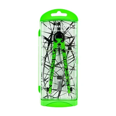 Quick adjustment compass including spare leads for school, training and university Stylish design in neon green and black with graphic pattern For drawing circles up to 39 cm in diameter Includes practical plastic case for safe storage The central drive wheel allows for precise adjustment and prevents slipping, Manufacturer: Eberhard Faber