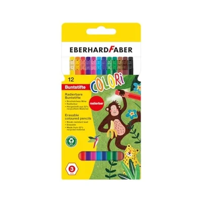 Easily erasable coloured pencils with shatterproof lead Each pen is equipped with eraser tip Made from 52% recycled material Easy to sharpen Highest colour brilliance