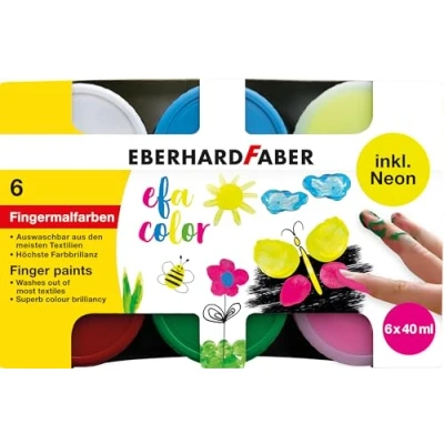 Eberhard Faber EFA Colour 578603 Finger Paint Set 6 Colours 40 ml Each Includes 2 Neon Paints Children Non Toxic