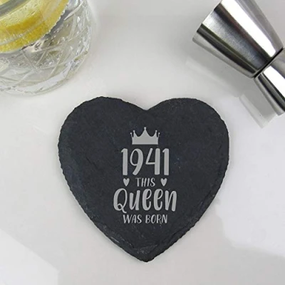 🎂 Is there a women in your life who is about to hit 80? Want to celebrate in style? Then this engraved heart slate coaster is the perfect gift for her! 👑 Engraved with a striking "1941: This Queen Was Born" design, one of these 80th birthday gifts for women is sure to put a smile on her face. This truly is a thoughtful Eightieth present he can use again and again. 🎁 Our 1941 collection includes a variation of gifts, perfect to give as a keepsake present for those hard to buy for women on their milestone birthday. 🎈 This Heart Slate Coaster is part of a range of 80th Birthday gifts. Why not treat your loved one to a special Eightieth gift that they will love! 📏 DIMENSIONS: 10 x 0.5 x 9.5 cm, Manufacturer: eBuyGB