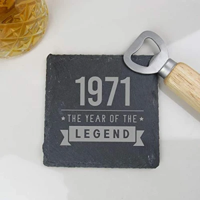 is there a man in your life who is about to hit 50? want to celebrate in style? then this engraved square slate coaster is the perfect gift for him! engraved with a striking "1971: year of the legend" design, one of these 50th birthday gifts for men is sure to put a smile on his face. this truly is a thoughtful fiftieth present he can use again and again. our 1971 collection includes a variation of gifts, perfect to give as a keepsake present for those hard to buy for men on their milestone birthday. this square slate coaster is part of a range of 50th birthday gifts. why not treat your loved one to a special fiftieth gift that they will love! dimensions: 10 x 0.5 x 10 cm, Manufacturer: eBuyGB