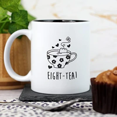eBuyGB Engraved Black Reveal Coffee Mug Eight Tea Design 350ml Cup, 80th Birthday Gifts for Women, Her Eightieth Gift Mum, Grandma
