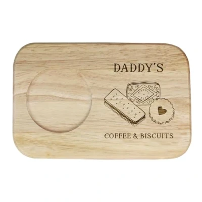 eBuyGB Engraved Daddy's Coffee & Biscuits Serving Board Wood Treat Board, Gifts for Dad, Daddy, Dada, Papa Birthday Dad
