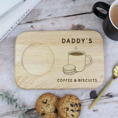 eBuyGB Engraved Daddy's Serving Board for Coffee & Biscuits Wood Treat Board, Gifts Dad, Daddy, Dada Birthday Dad