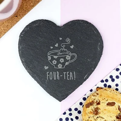 eBuyGB Engraved Heart Slate Coaster Four Tea Design 40th Birthday Gifts for Women, Her Fortieth Gift Mum, Friend, Sister, Auntie Drinks Mat