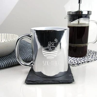 eBuyGB Engraved Metallic Shiny Silver Coffee Mug SIX Tea Design 350ml Cup, 60th Milestone Birthday Gifts for Men, Him Sixtieth Gift Friend, Grandad, Dad, Husband