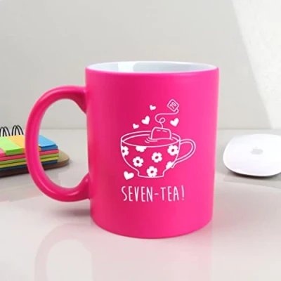 eBuyGB Engraved Neon Pink Coffee Mug Seven Tea Design 310ml Cup, 70th Birthday Gifts for Women, Her Seventieth Gift Mum, Grandma