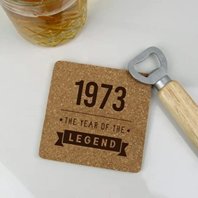 Is there a man in your life who is about to hit 50? Want to celebrate in style? Then this engraved square cork coaster is the perfect gift for him! Engraved with a striking "1973: Year of the Legend" design, one of these 50th birthday gifts for men is sure to put a smile on his face. This truly is a thoughtful Fiftieth present he can use again and again. Our 1973 collection includes a variation of gifts, perfect to give as a keepsake present for those hard to buy for men on their milestone birthday. This Square Cork Coaster is part of a range of 60th Birthday gifts. Why not treat your loved one to a special Fiftieth gift that they will love! DIMENSIONS: 10 x 0.5 x 10 cm