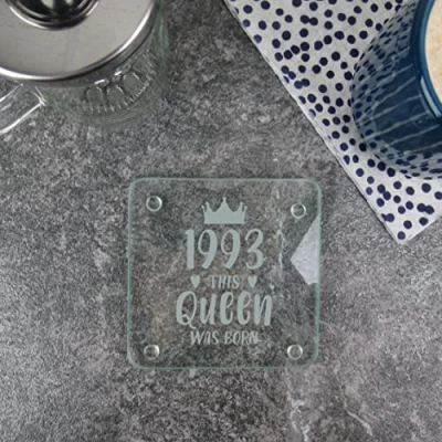 eBuyGB Engraved Square Glass Coaster 1993 This Queen was Born Design 30th Birthday Gifts for Women, Her Thirtieth Gift Mum, Sister, Auntie, Friend Drinks Mat, Placemat