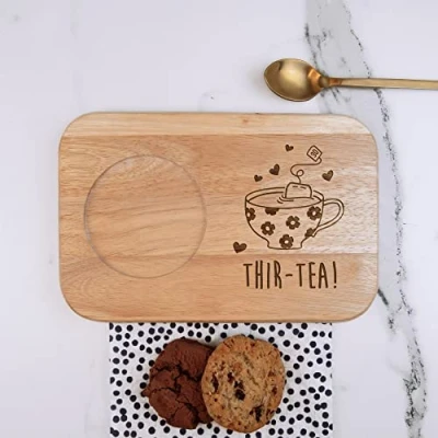 Is there a women in your life who is about to hit 30? Want to celebrate in style? Then this engraved Tea & Biscuits Board is the perfect gift for her! Engraved with a striking "THIR-TEA" design, one of these 30th birthday gifts is sure to put a smile on your Mum's or Grandma's face! This truly is a thoughtful Thirtieth present that can be used again and again. Our engraved Tea & Biscuits Board makes the perfect gift for your Mum, Wife, Sister, Aunty for their birthday or Christmas this year. We are sure that this unique Tea & Biscuits Board will get plenty of use, to indulge with a well deserved tea or coffee and biscuits every morning! Our 30th birthday gifts are perfect for anyone looking for functional 30th presents, perfectly paired with her favourite biscuits, we are sure it will go down a treat! This Tea & Biscuits Board is part of a range of 30th Birthday gifts, by where the design, "THIR-TEA" can be engraved on the following products; Neon Pink Mug, Silver Metallic Mug, Square Slate Coaster, Heart Slate Coaster, Bamboo Travel Flask, Gold Metallic Mug, Flexible Sofa Tray and Black Reveal Mug. Why not treat your loved one to a special Thirtieth gift that they will love! Dimension: 15 x 1.5 x 23 cm