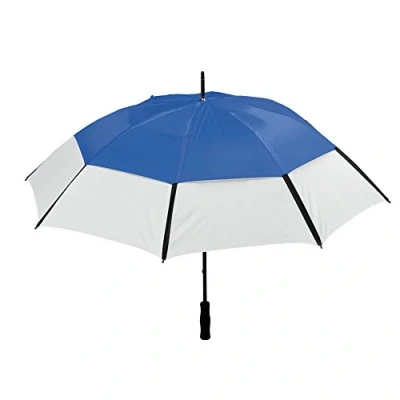 Two tone golf umbrella Double layer ventilation system Fibreglass frame for storm and wind proofing Manual opening with padded foam handle for a soft grip Dimensions: 101 x 152 x 4 cm