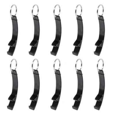 eBuyGB Metal Bottle Opener Keyring, Colourful Aluminium Beer Keychain, Black (Pack of 10)